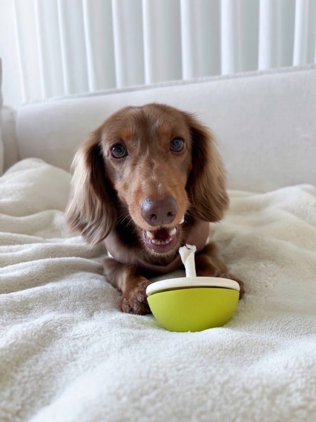 We searched far and wide for a chew holder that was both functional and beautiful, and this piece exceeded every expectation. Asobone is a Japanese brand dedicated to thoughtfully designed, safety-forward enrichment. Their signature treat holder securely grips dental chews and sticks, helping prevent dogs from swallowing treats whole while encouraging slower, more mindful chewing. Each piece reflects Asobone’s commitment to function, simplicity, and innovation.