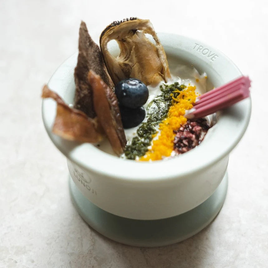From Singapore, meet the ultimate duo for mess-free enrichment. This set includes the TROVE enrichment slow feeder, designed to hold your dog’s favorite frozen treats and the BASE station, which keeps everything secure and contained. Use the TROVE on its own for everyday enrichment, or pair it with the BASE to reduce mess and keep the feeder in place exactly where your dog prefers to enjoy their treat. TROVE + BASE for secure, mess-free treat time.