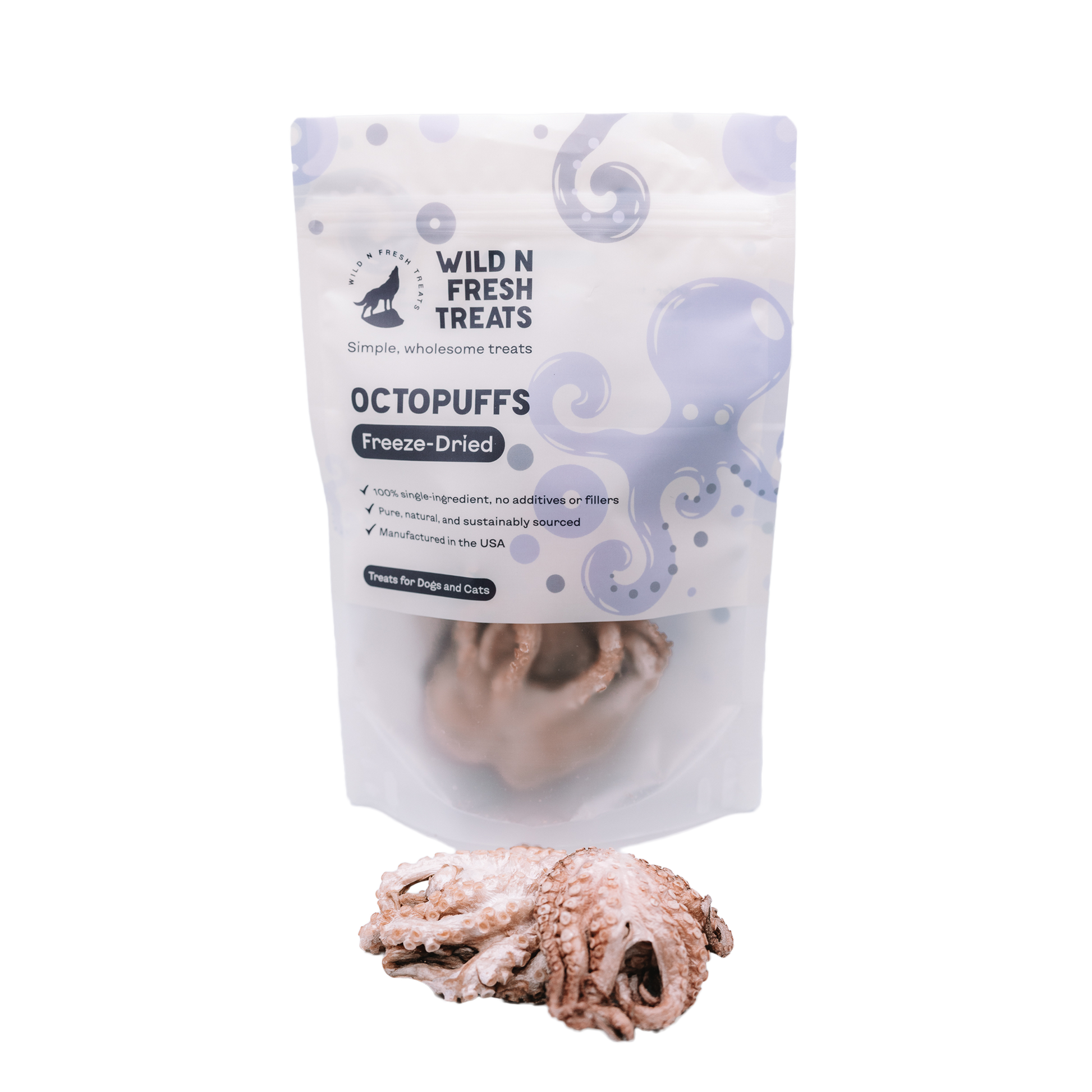 A unique seafood treat crafted for adventurous pets. Freeze-Dried Octopuffs are made from wild-caught baby octopus and gently freeze-dried to preserve natural flavor and nutrients. Rich in lean protein, taurine, and essential minerals, these light, crunchy bites add variety to your pet’s diet while supporting overall wellness.
