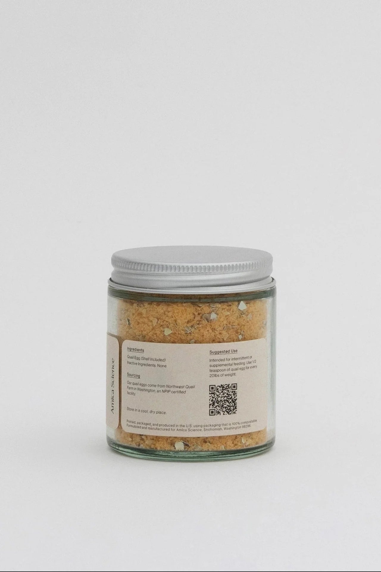 From the Brand: Amica Science’s Coturnix quail eggs are packed with essential nutrients such as omega-3 fatty acids, selenium, iron, vitamin B12, and vitamin A, offering a plentiful source of nourishment. Through precise processing, we extract calcium and important vitamins from the eggshells, increasing their nutritional content and providing a natural defense by eliminating harmful bacteria. The high protein content in these eggs supports muscle development, while the omega-3 fatty acids contribute to a healthy coat and skin.