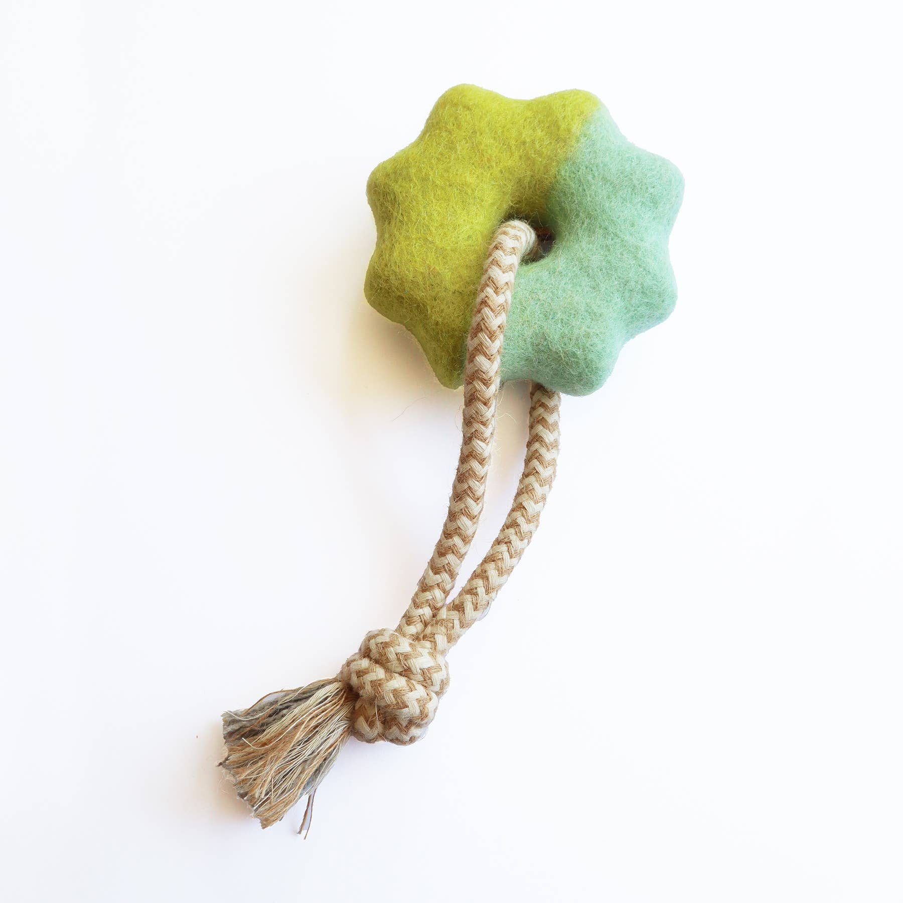 Handcrafted by talented female artisans in Nepal using organic sheep’s wool, organic cotton, and jute rope, Wheely Good Time combines safe natural textures with bond-promoting play. Its natural, digestible fibers and plastic-free design aid in teeth cleaning and promote stimulating tugging sessions, ensuring a good time for everyone.