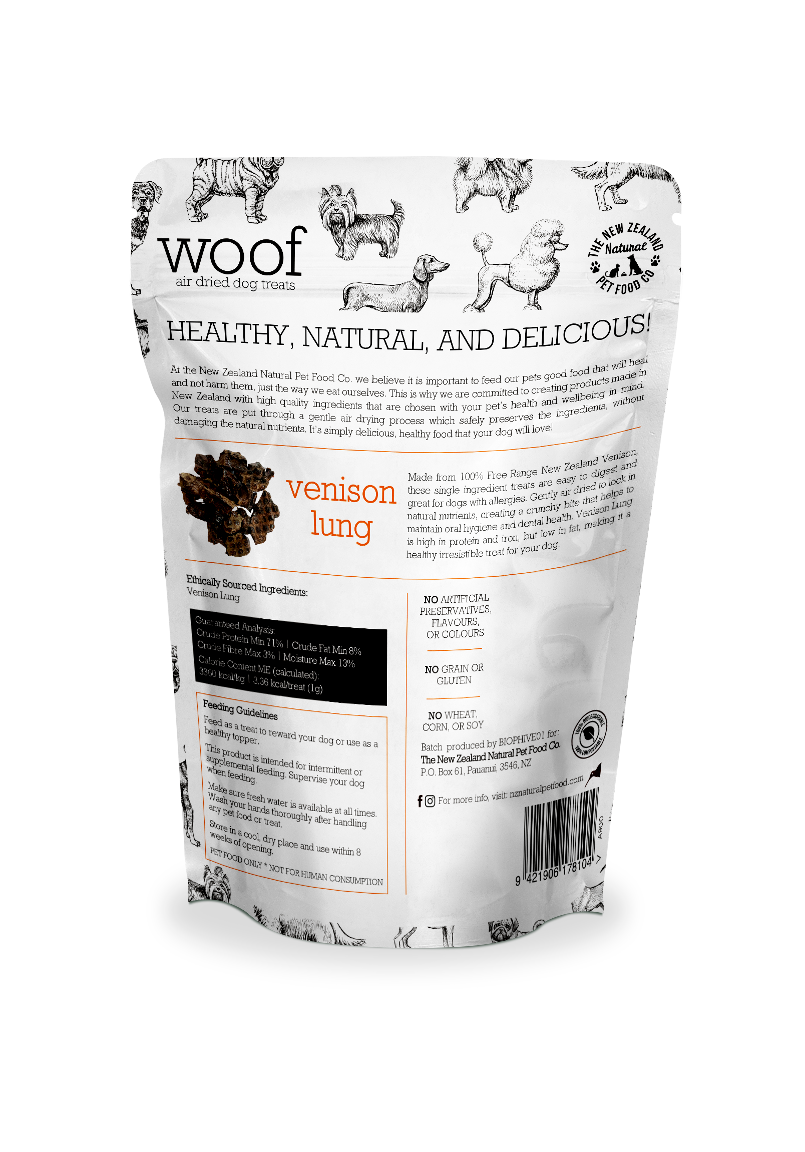 Discover the natural goodness of New Zealand Venison Lung. Sourced from 100% free-range venison, these treats are gently air-dried to preserve every essential nutrient. The naturally low-fat formula is an excellent source of high protein and iron, supporting energy and overall vitality.